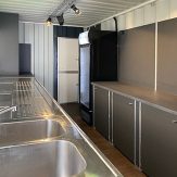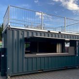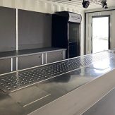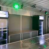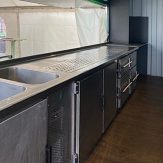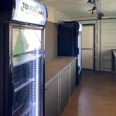 - Theke mit Getränkekühlung, Ablageflächen und Stauräumen