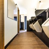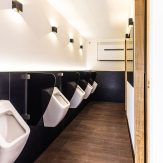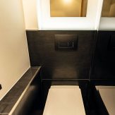 - raumhohe Einzelkabinen mit schwarzen Glastüren